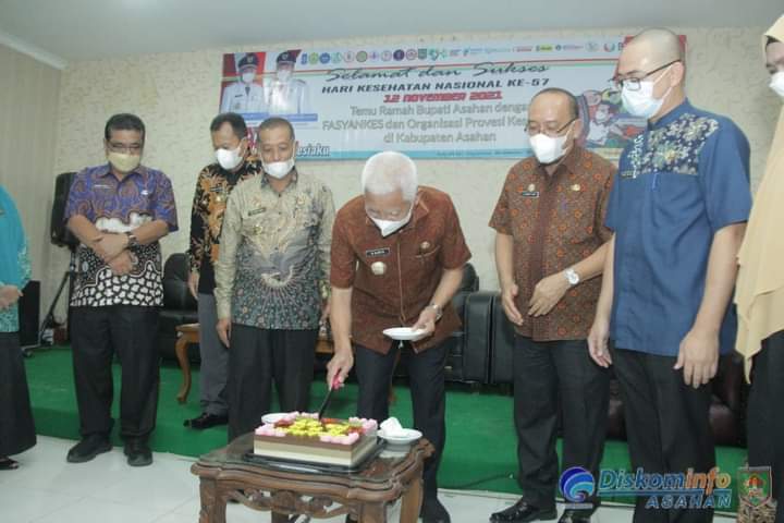 Peringatan Hari Kesehatan Nasional kali ini di Kabupaten Asahan terdiri dalam beberapa bagian, mulai pukul 07.30 Wib s/d selesai dilaksakan Upacara Memperingati Hari Kesehatan Nasional Ke-S7 secara Virtual, bertempat di Aula Melati Kantor Bupati Asahan. Setelah upacara tersebut, dilanjutkan dengan Vaksinasi Massal, Temu Ramah Bupati Asahan dengan Insan Kesehatan, dan cek gula darah gratis yang dilaksanakan hari ini bertempat di Dinas Kesehatan Kabupaten Asahan.