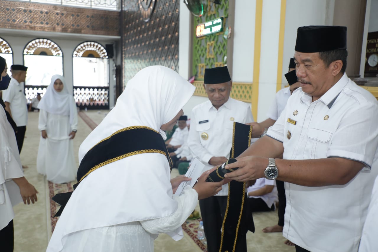 Sebelum menyampaikan arahannya, Bupati Asahan H. Surya, BSc bersama dengan Wakil Bupati Asahan Taufik Zainal Abidin Siregar, S.Sos, M. Si mewisuda 14 orang Hafizh dan 5 orang Hafizhah 30 Juz Lembaga Tahfidz Masjid Agung H. Achmad Bakrie Kisaran Pemkab Asahan.