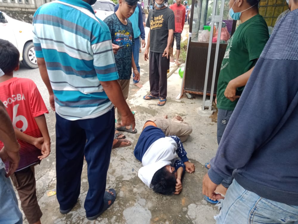 Pantauan dilapangan, pengendara motor tersebut usai terpental terlihat lemas dan syok. Warga sekitar langsung memberikan pertolongan dan terlihat ada luka dibagian jari dan kaki sebelah kanan.