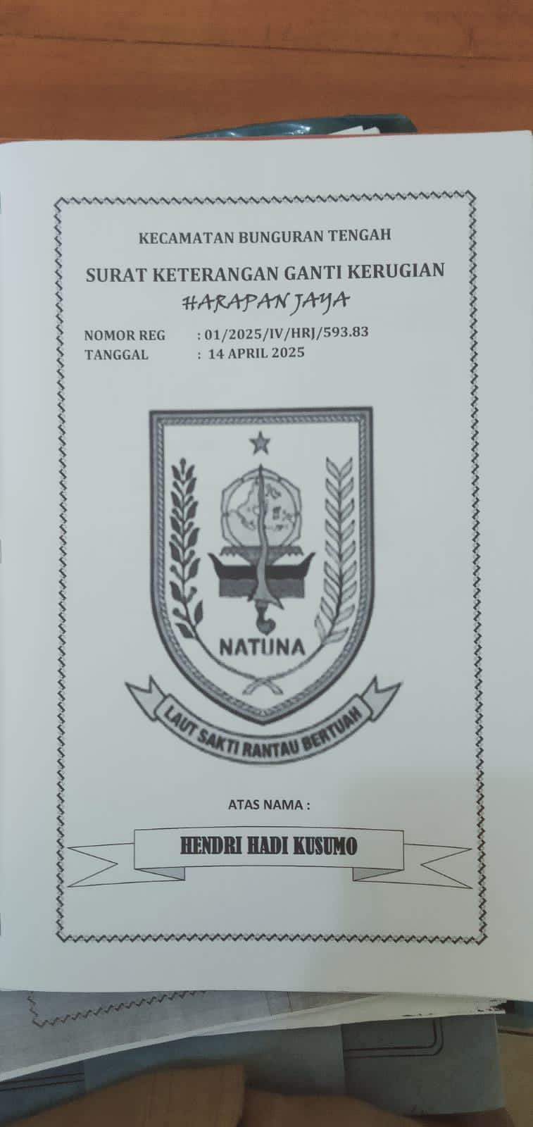 Potretnusantara.id,Natuna — Telah terjadi kehilangan dokumen penting berupa Surat Tanah milik warga Kabupaten Natuna atas nama Hendri Hadi Kusumo.