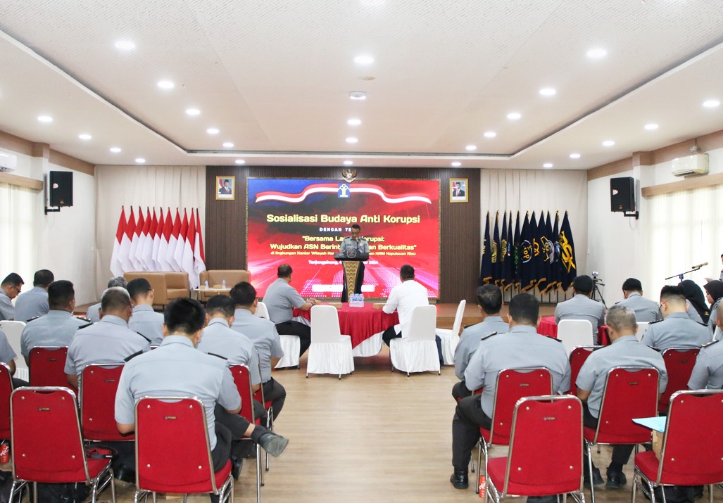 TANJUNGPINANG, Potretnusantara.id-Plh. Kepala Kantor Wilayah Syahrioma Delavino membuka secara resmi kegiatan sosialisasi budaya anti korupsi di lingkungan Kantor Wilayah Kementerian Hukum dan HAM Kepulauan Riau.