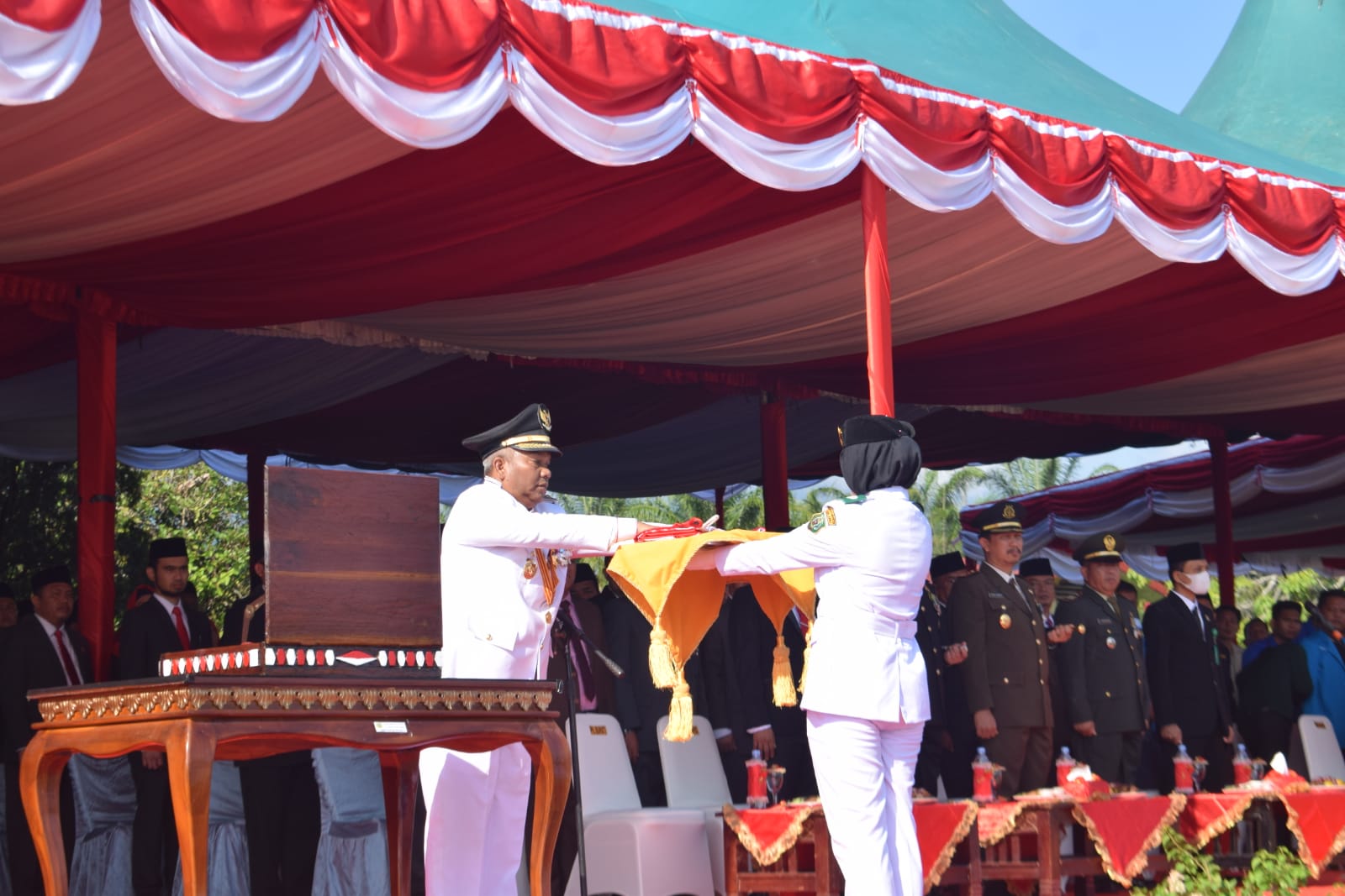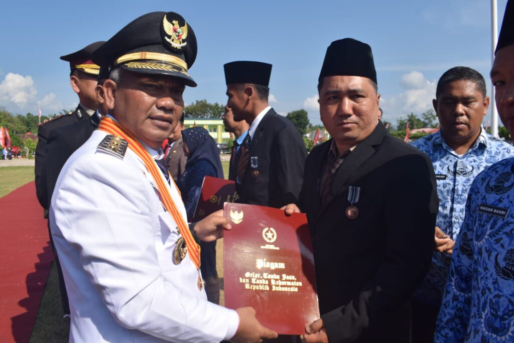 Usai upacara pengibaran bendera Plt Bupati Ahmad Zarnawi menyerahkan taliasih dan cendramata kepada Veteran dan Wira Kauri sebagai wujud kepedulian dan penghargaan kepada para pejuang.