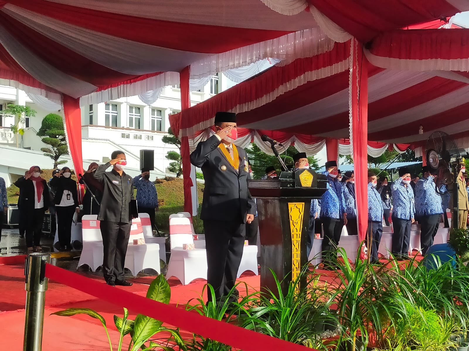 “Meski dalam kondisi pandemi covid-19, kita masih bisa melaksanakan peringatan HUT kemerdekaan Republik Indonesia ke-76 ini dengan sederhana dan penuh hikmat,”ucap Aunur Rafiq saat menyampaikan amanat.