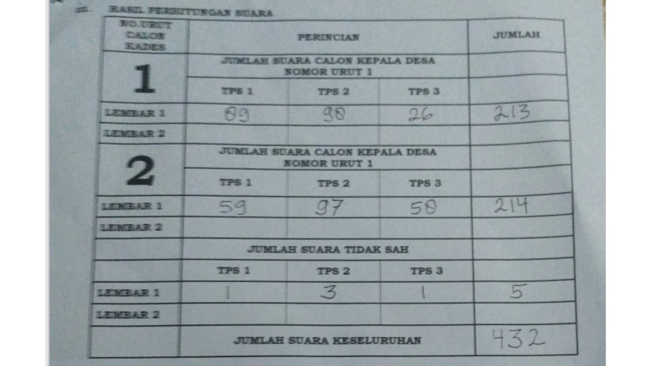 LINGGA , Poteretnusantara id – Pelaksanaan Pemilihan Kepala Desa di Pulau Bukit, Kecamatan Katang Bidara, Kabupaten Lingga yang hanya selisih satu suara, diminta untuk diulang, oleh pendukung salah satu pasangan calon kepala desa, nomor urut satu, karena didapati beberapa pemilih yang belum cukup usia pemilih menggunakan hak pilihnya.