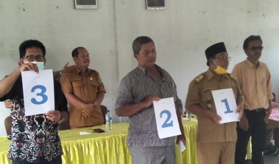 Ferry dalam sambutannya mengatakan bahwa hari ini merupakan tahapan penetapan, dari bakal calon menjadi calon kepala desa, juga pengundian nomor urut calon kepala desa yang akan dicantumkan pada kartu suara.