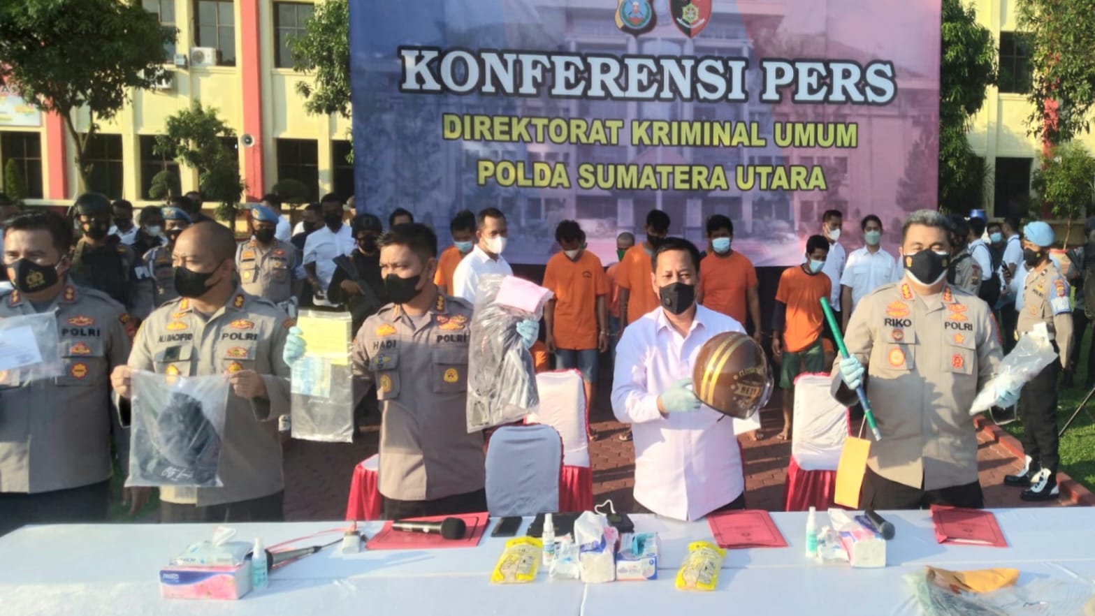 “Rilis sore hari ini sekaligus juga menjawab berbagai rumor dari masyarakat terhadap banyaknya atau munculnya fenomena Curas, Curas dan Curanmor, sekali lagi ini menjawab terkait ketegasan penindakan oleh Polda Sumatera Utara dan Jajarannya terhadap Kasus Curas, Curas dan Curanmor,” tutur Kabid Humas Kombes Hadi yang disaksikan Iptu Widodo, Jamal, Zainul, para Kanit dari Polsek-Polsek dan para Wartawan.