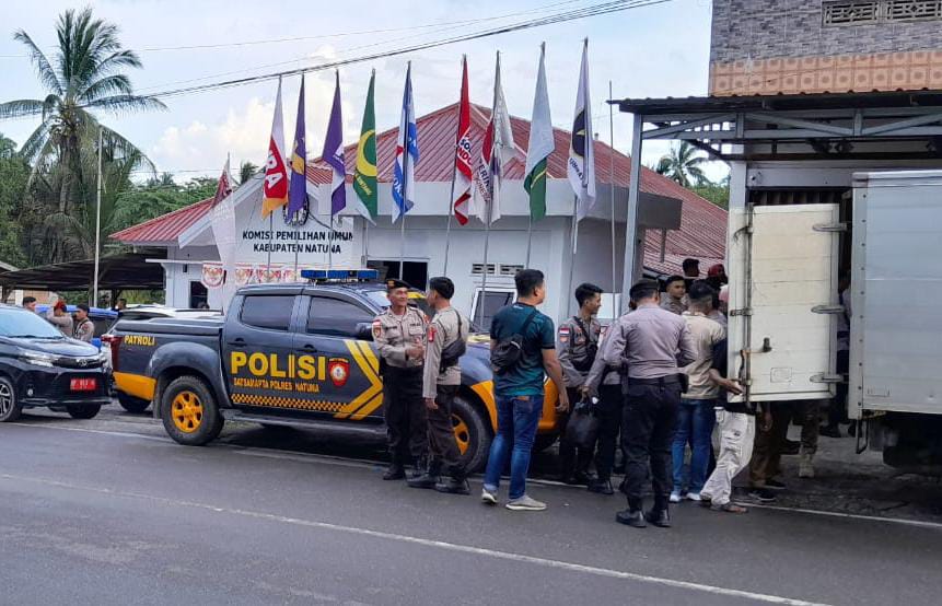 Kapolres Natuna AKBP Nanang Budi Santosa, S.I.K melalui Kabag Ops Polres Natuna AKP Khairul mengatakan Pengawalan dan pengamanan dilakukan oleh personil Polres Natuna, dengan pendampingan dari Komisi Pemilihan Umum (KPU) dan Badan Pengawas Pemilu (Bawaslu) Kabupaten Natuna.