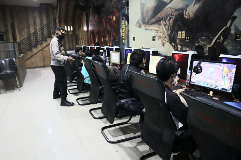Sejumlah petugas langsung menyasar masuk ke dalam dua warnet tersebut. Sampai di dalam warnet petugas menyarankan semua pengunjung agar kembali ke rumah masing-masing.