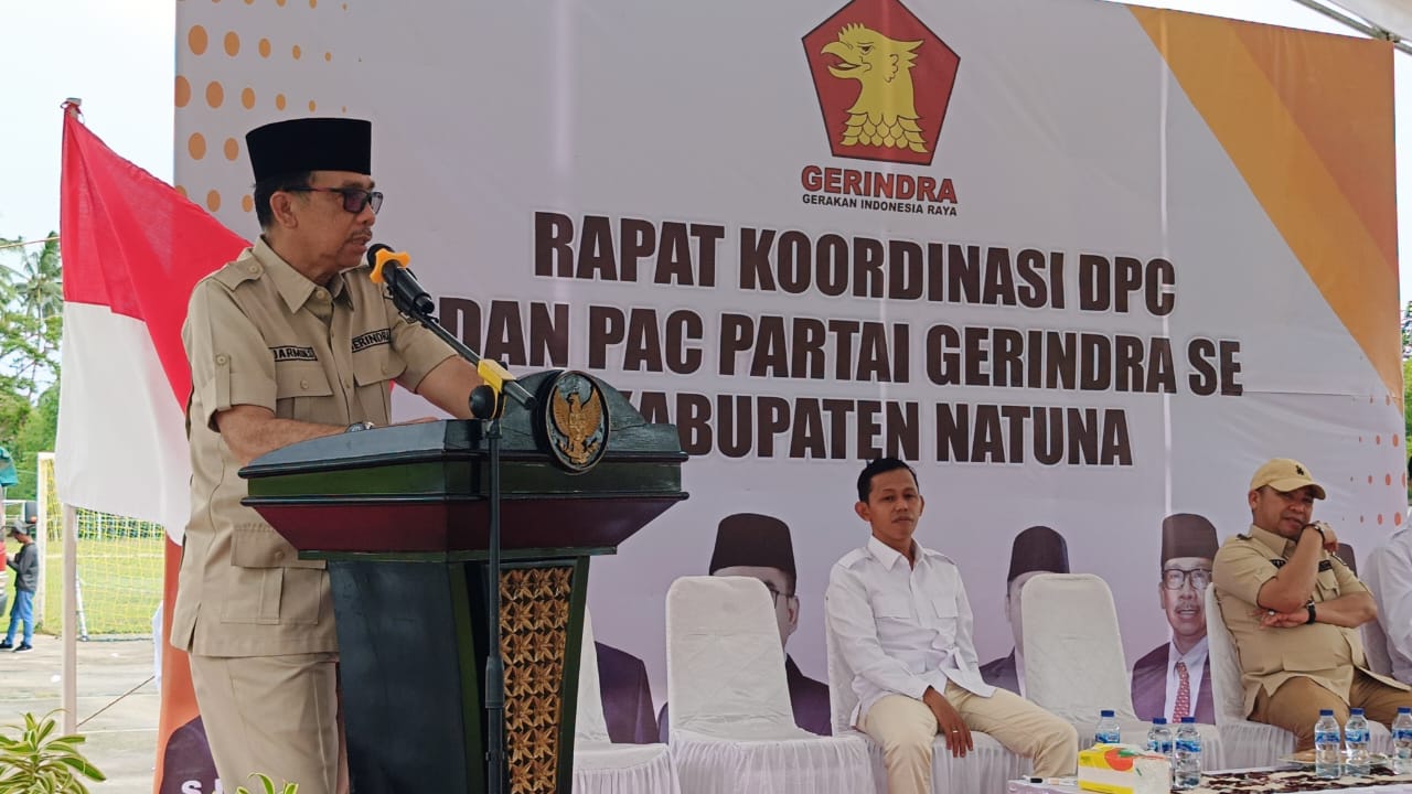 Dalam sambutannya, Jarmin Sidik menyampaikan pesan khusus dari Ketua Umum Partai Gerindra yang juga Presiden Republik Indonesia, H. Prabowo Subianto, kepada seluruh kader Gerindra di Kabupaten Natuna.