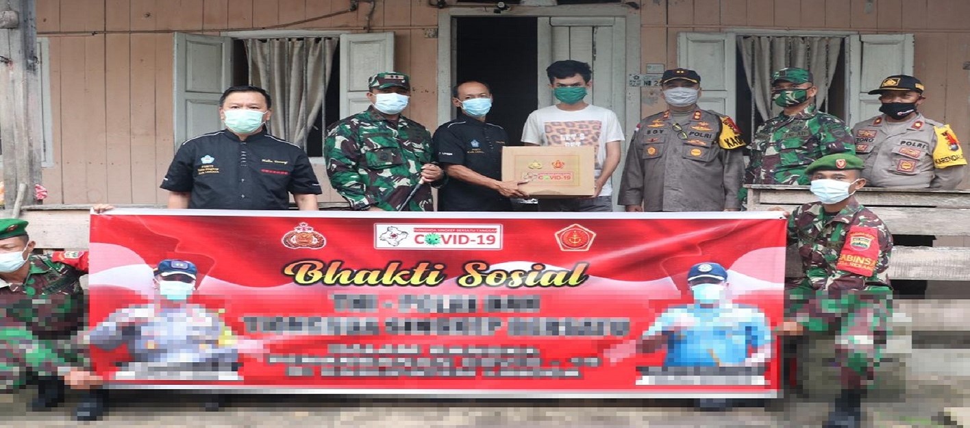 LINGGA, Potretnusantara.id-TNI Polri berkolaborasi bersama warga PSMTI Singkep Bersatu menggelar kegiatan bhakti Sosial kepada masyarakat di Kabupaten Lingga, Rabu,(6/5). Kegiatan ini dilakukan sebagai wujud kepedulian terhadap masyarakat kurang mampu akibat dampak Covid-19 di wilayah Kabupaten Lingga.