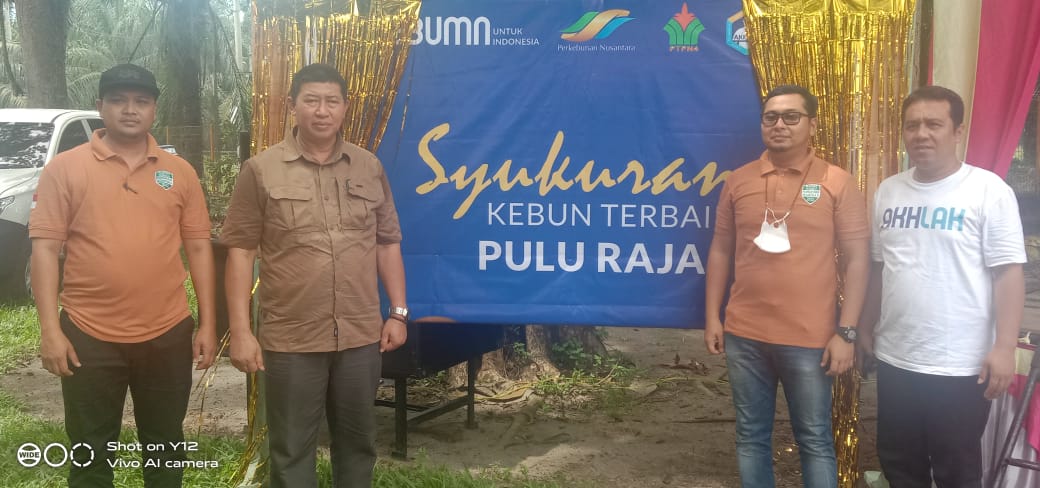 Acara Syukuran yang dilaksanakan di halaman kantor Kebun Unit Pulu Raja, Sabtu (28/05/2022) dihadiri Manager Unit PTPN IV Kebun Pulu Raja, Sutres, SP, Asisten Kepala Tanaman, M. Zuhri Padana, SP, Asisten Personalia Kebun (APK) Otniel Willy STP Tampubolon, Maskep (Masinis Kepala) Agus S Sipayung, seluruh asisten afdeling, staf kantor dan pabrik serta pengaman kebun.