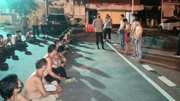 Para preman dan pelaku pungli yang terjaring razia itu langsung diboyong ke kantor polisi. Satu per satu mereka diperiksa. Baju mereka juga ditanggal.