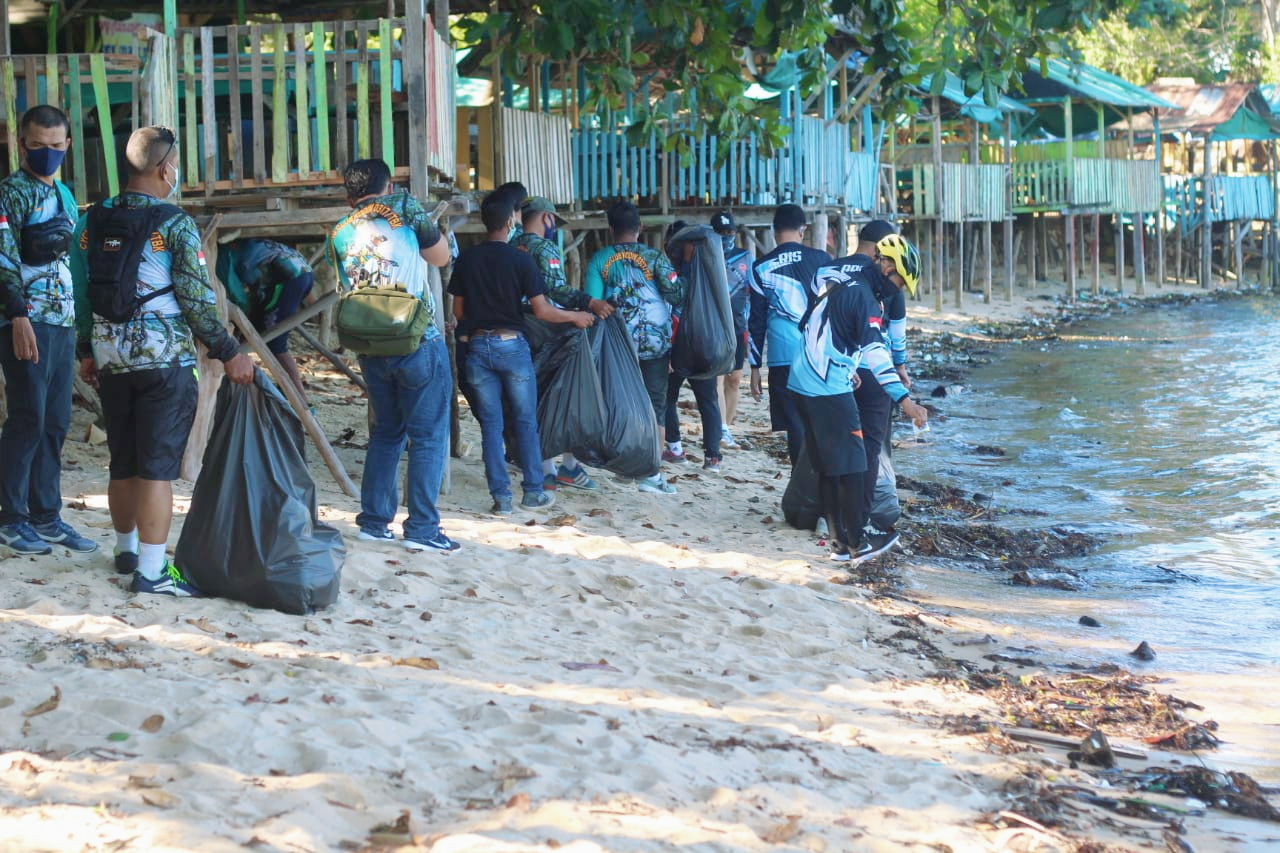 KARIMUN, Potretnusantara.id-Komunitas Seabrotherhood bersama TNI dan BNI Kabupaten rutin menjaga dan melestarikan kebersihan lingkungan pantai Pelawan, kegiatan bersih lingkungan ini dilaksanan secara rutin setiap bulannya.