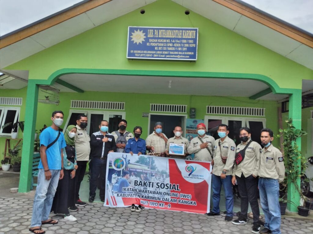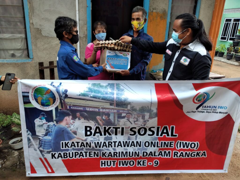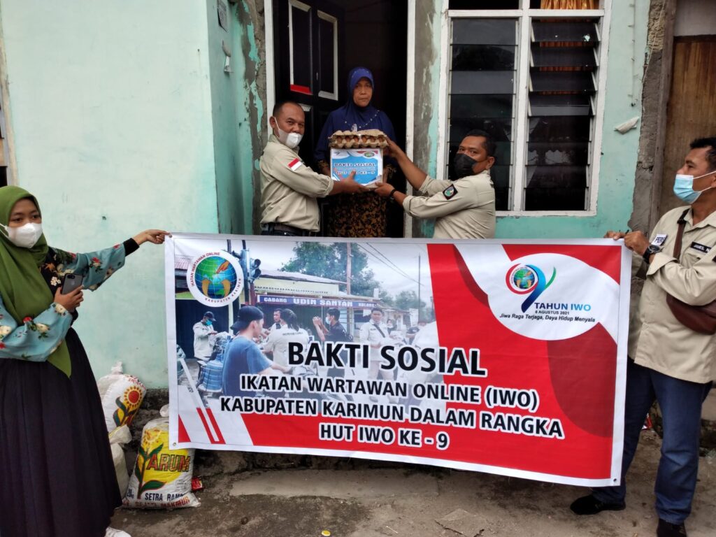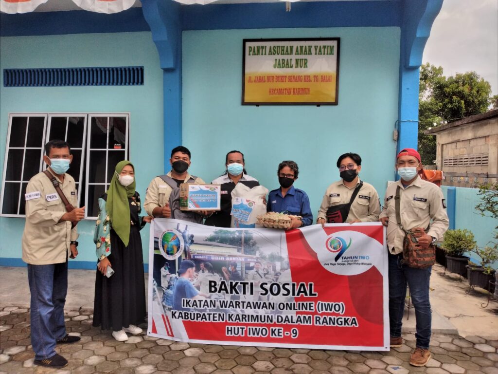 KARIMUN, Potretnusantara.id-Dalam memperingati HUT Ikatan Wartawan Online (IWO) ke-9 yang jatuh tepat pada hari ini, Minggu (8/8/2021). Pengurus Daerah IWO Kabupaten Karimun, Kepulauan Riau membagikan bantuan paket sembako ke masyarakat dan panti asuhan.