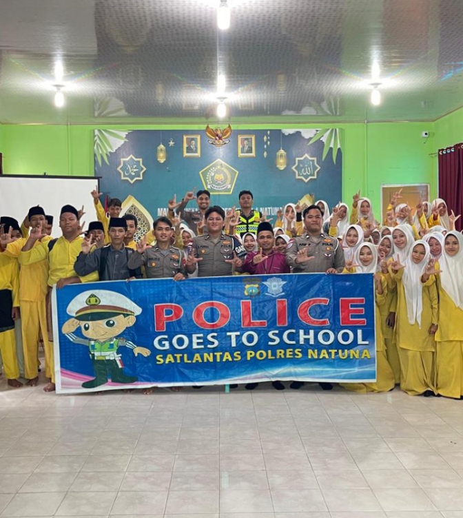 Kasat Lantas Polres Natuna, AKP Erwan Tony, menyampaikan bahwa kegiatan Police Go To School merupakan langkah strategis dalam membangun kesadaran tertib berlalu lintas sejak usia dini.
