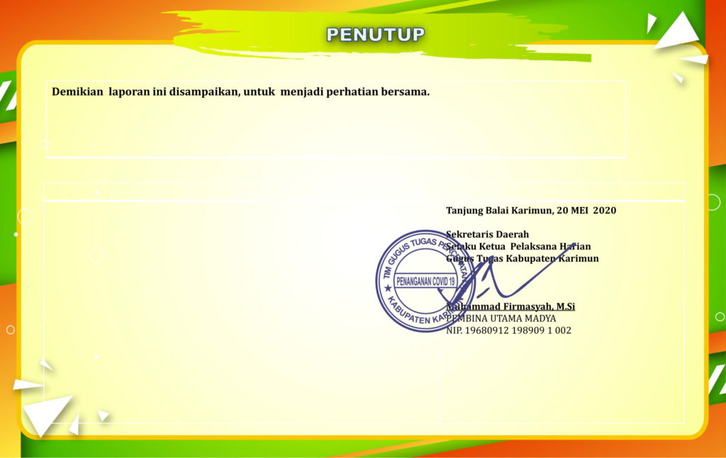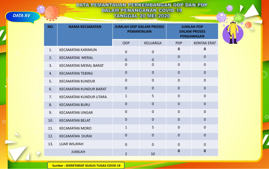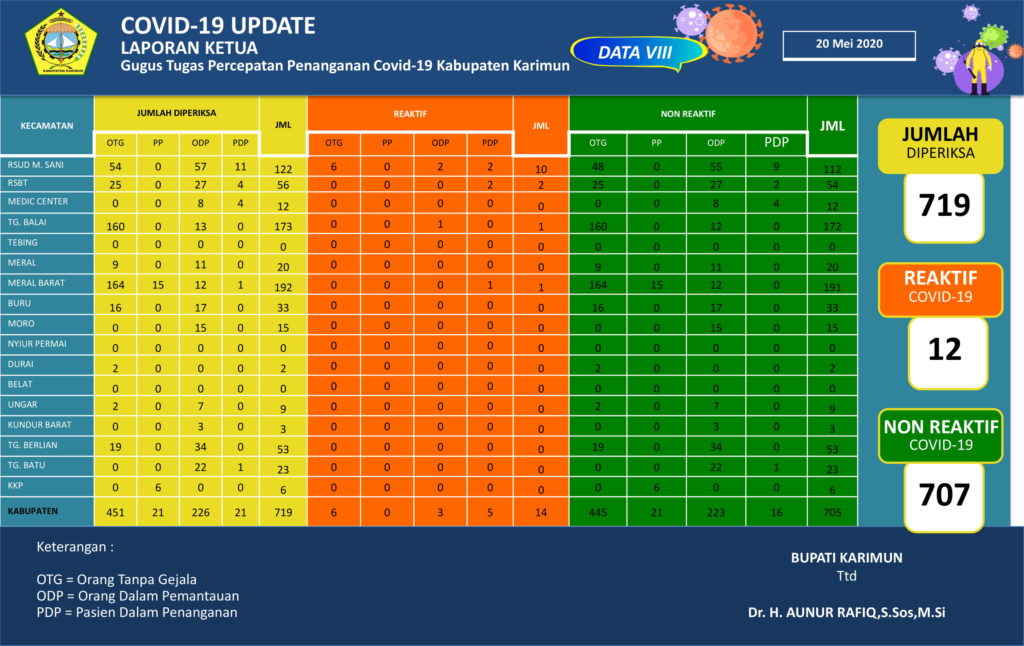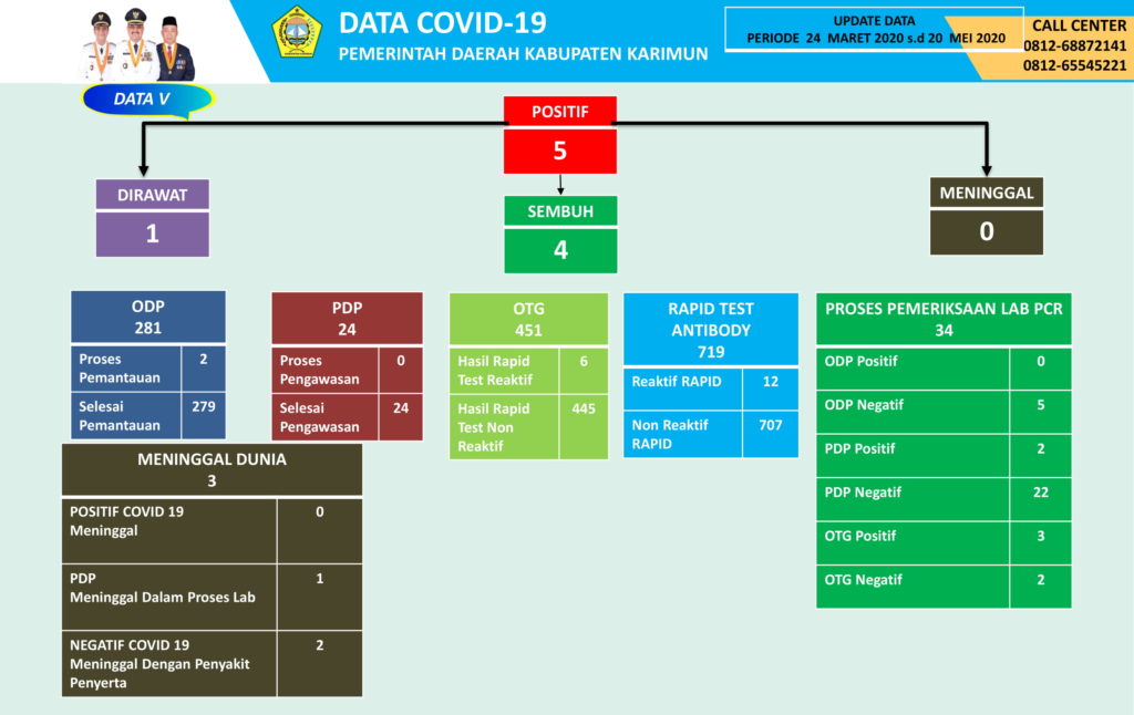 Laporan Pencegahan Penanganan Covid 19 oleh Tim Gugus Tugas Covid 19 Kabupaten Karimun update data per 20 Mei 2020
