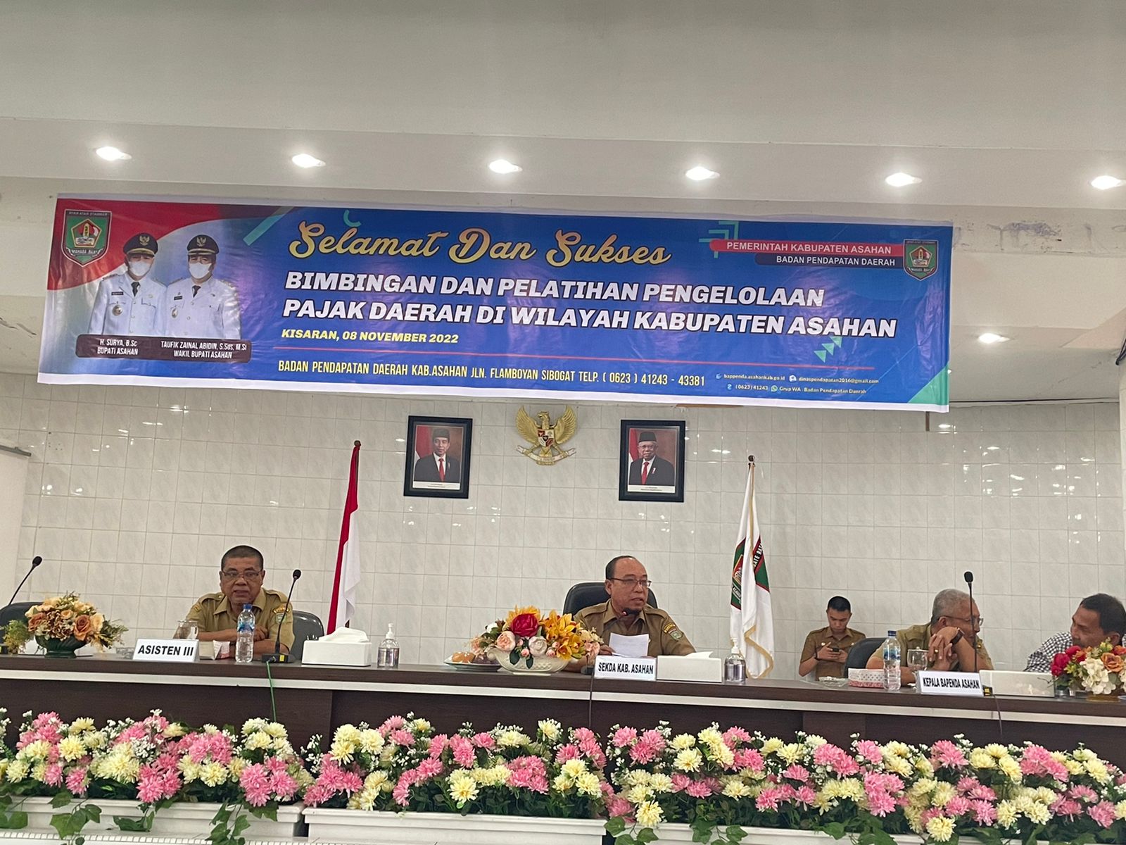 ASAHAN, Potretnusantara.id – Sekretaris Daerah (Sekda) Kabupatan Asahan Drs. John Hardi Nasution, M.Si membuka Bimbingan dan Pelatihan Pengelolaan Pajak Daerah Wilayah Kabupaten Asahan di Aula Melati Kantor Bupati Asahan, Rabu (09/11/2022).