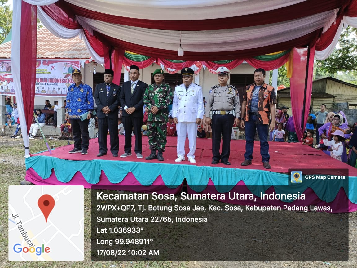 Padang Lawas,Potretnusantara.id – Usai upacara peringatan detik-detik proklamasi Dirgahayu Republik Indonesia ke-77 RI di Kecamatan Sosa, Camat lepas pertunjukan Devile dan Merchingban antar sekolah di depan lapangan hijau SLTPN 2 Pasar Ujungbatu, Kecamatan Sosa
