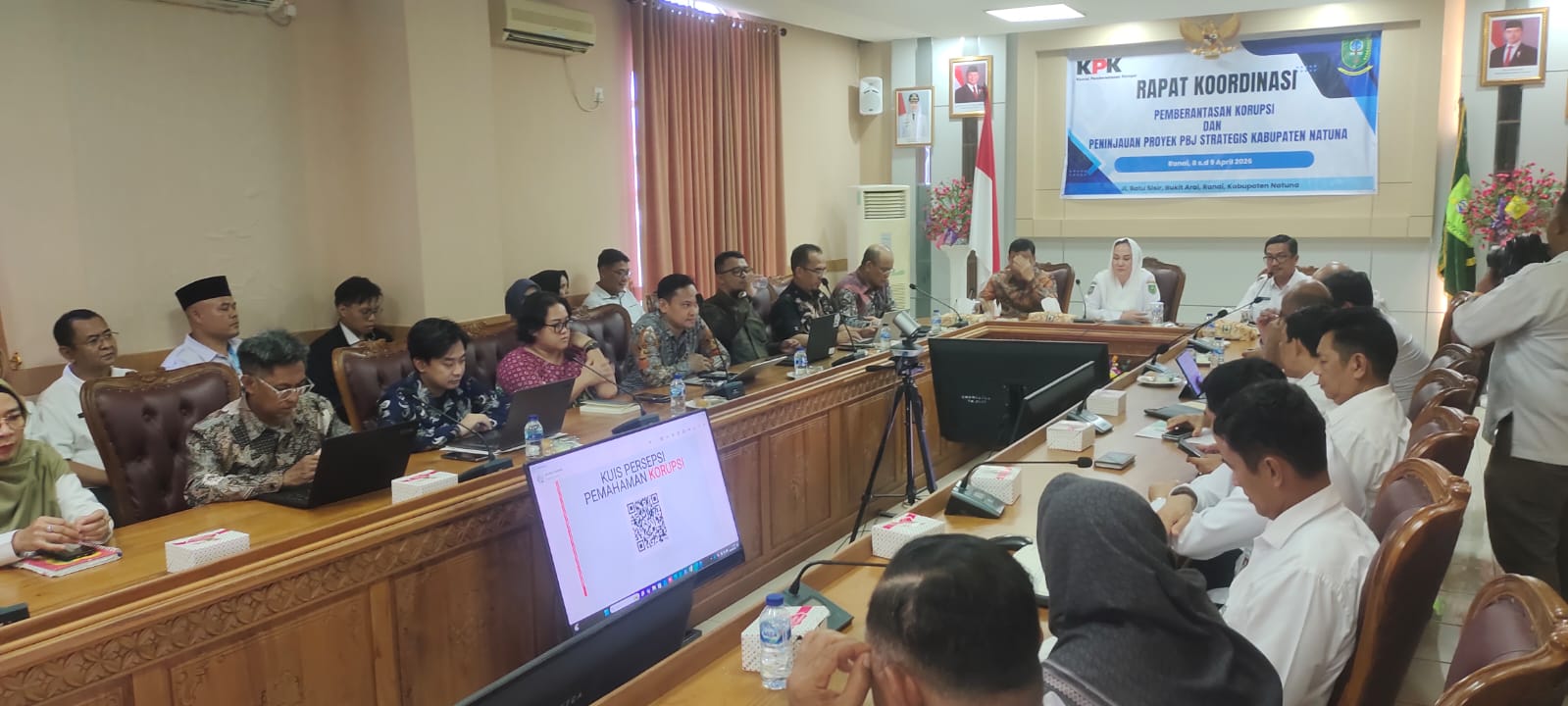 potretnusantara.id, Natuna – Komitmen Pemerintah Kabupaten Natuna dalam mewujudkan tata kelola pemerintahan yang bersih dan transparan kembali ditegaskan melalui Rapat Koordinasi (Rakor) Pemberantasan Korupsi bersama Komisi Pemberantasan Korupsi (KPK) yang dipimpin langsung oleh Bupati Natuna, Cen Sui Lan, di ruang rapat utama Kantor Bupati Natuna, Rabu (8/4/2026).