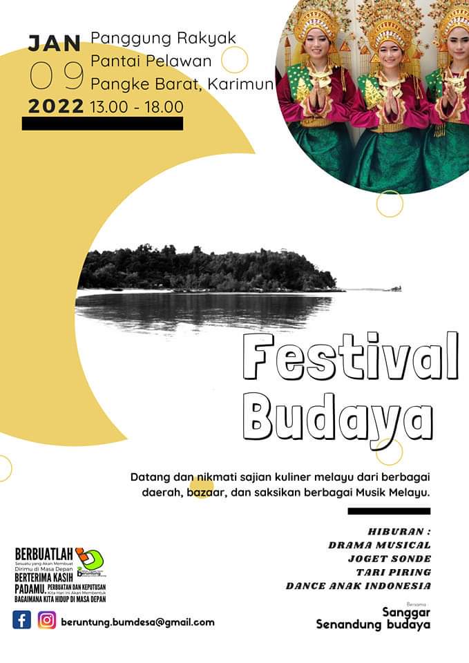 KARIMUN, Potretnusantara.id- Dalam menarik para wisatawan Bumdes Pangke Barat menyampaikan bahwa akan dilaksanakan kegiatan Festival Budaya oleh salah satu organisasi sangar yang ada di Kabupaten Karimun.