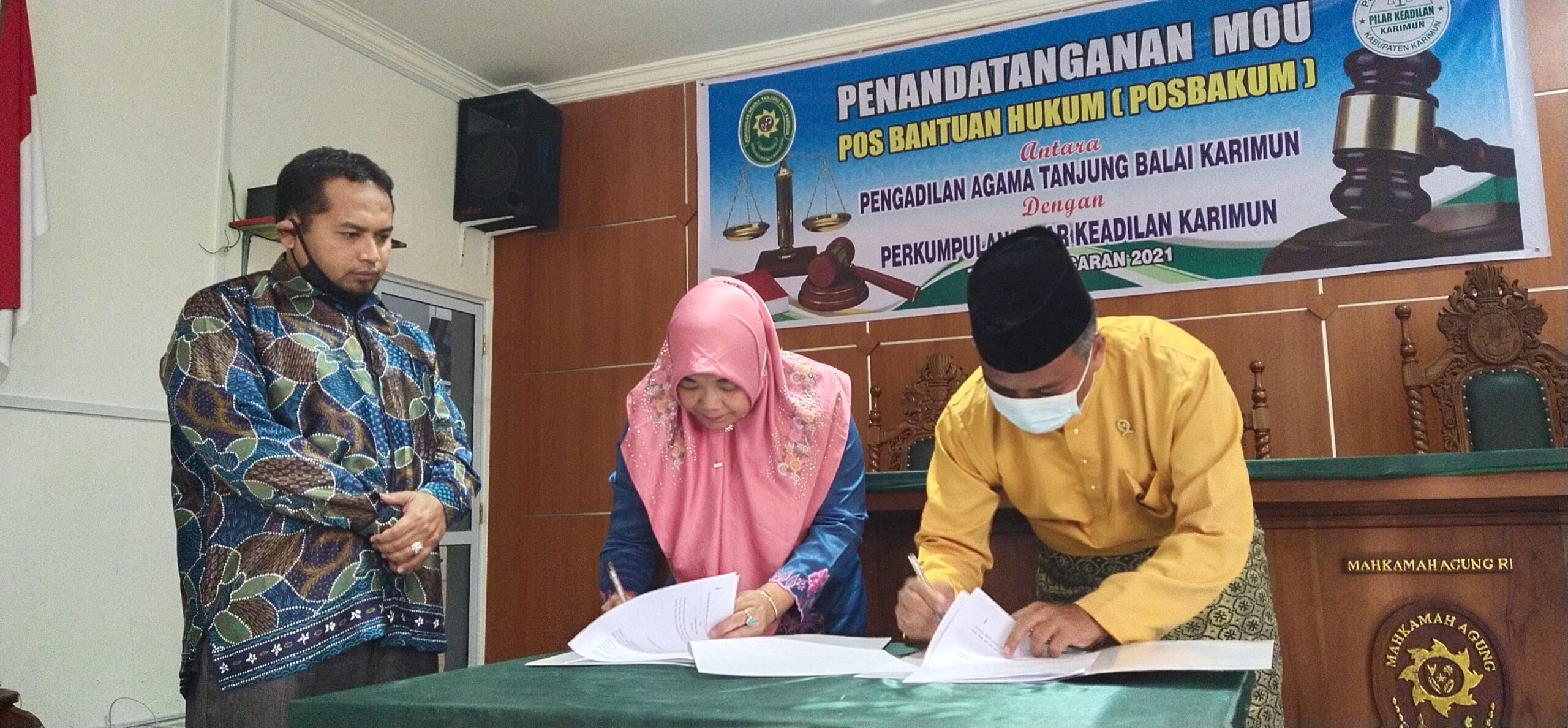 Pantauan dilapangan, usai memberikan kata sambutan maupun pengarahan dari Ketua Pengadilan Agama Kabupaten Karimun, H Sulaiman dan Ketua Lembaga Bantuan Hukum (LBH) Perkumpulan Pilar Keadilan Karimun, Rosita kedua belah pihak melakukan penandatanganan sebagai bentuk iakatan kerjasama satu sama lain.