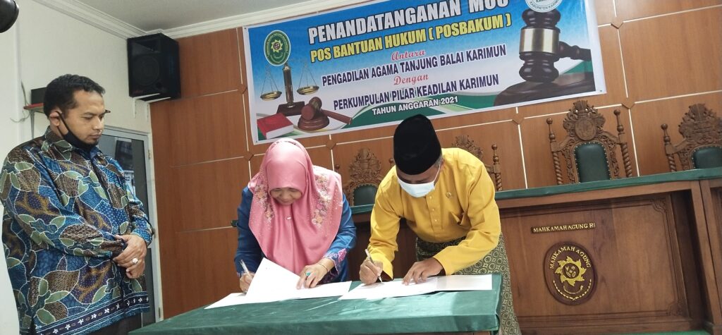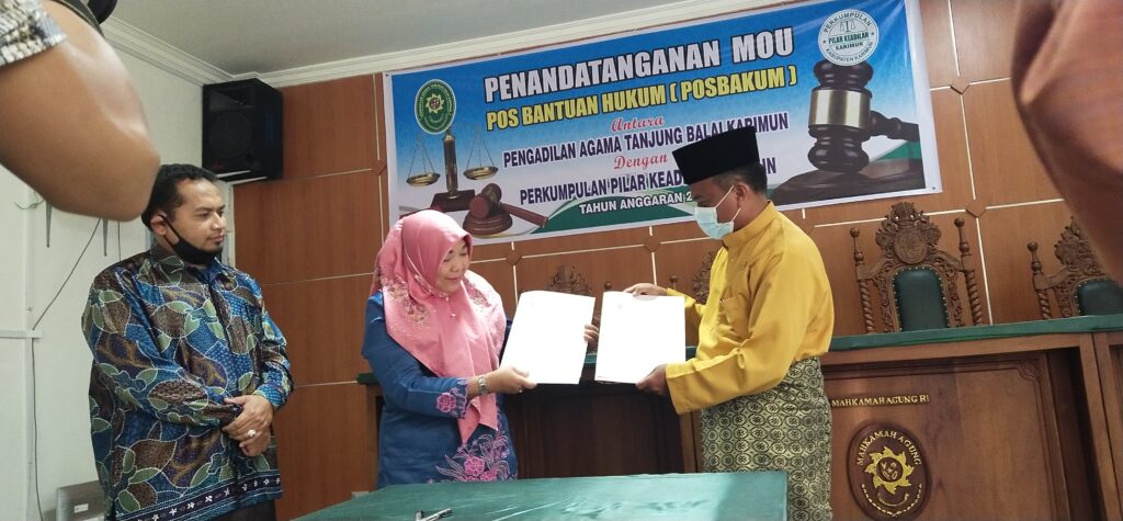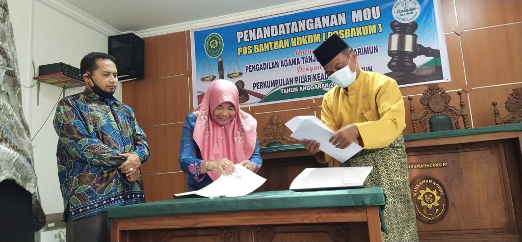 KARIMUN, Potretnusantara.id-Lembaga Bantuan Hukum (LBH) Perkumpulan Pilar Keadilan Karimun kembali mengadakan penandatanganan kesepakatan kerjasama (MOU) bersama Pengadilan Agama (PA) Kabupaten Karimun, Jumat (29/1) di gedung Pengadilan Agama, Poros, Kecamatan Meral.