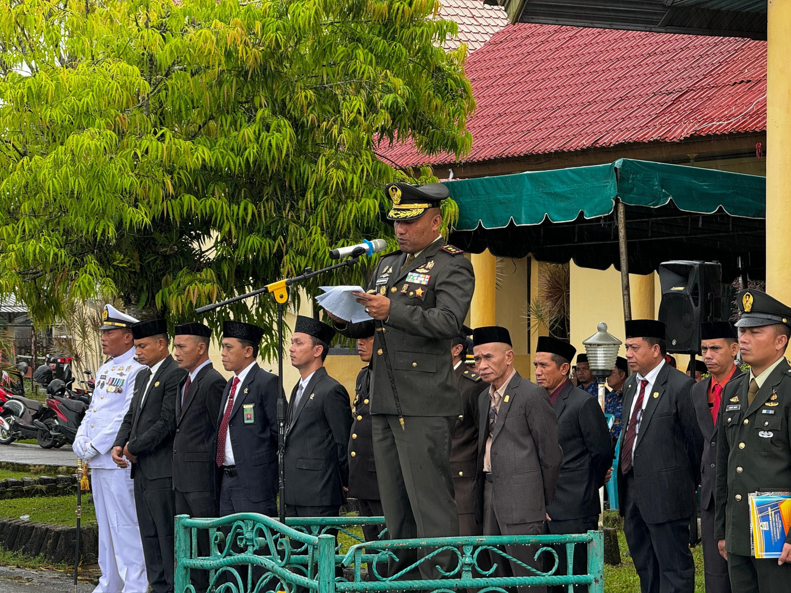 Dandim Letkol Inf. Moh Mulyono, S.IP saat membacakan sambutan Kepala Badan Pembinaan Ideologi Pancasila (BPIP K.H. Yudian Wahyudi, menyampaikan, “Pada hari ini, tanggal 1 Juni 2024, kita memperingati Hari Lahir Pancasila. Hari ketika Bung Karno, sebagai Proklamator Kemerdekaan, bapak Pendiri Bangsa, pertama kali memperkenalkan Pancasila melalui pidatonya pada tahun 1945 di depan sidang Badan Penyelidik Usaha-usaha Persiapan Kemerdekaan (BPUPK),” ucap Letkol Inf. Moh Mulyono.