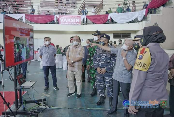ASAHAN, Potretnusantara-id- Wakil Bupati Asahan Taufik Zainal Abidin Siregar, S. Sos, M. Si bersama dengan Dandim 0208/Asahan Letkol Inf. Sri Marantika Beruh meninjau pelaksanaan vaksinasi yang terletak di tiga wilayah PT Socfindo Kebun Aek Loba yakni Lapangan Tenis PT. Socfindo Kebun Aek Loba, Poli Klinik PT. Socfindo, Kantor 09 (Pengurus PT. Socfindo Kebun Aek Loba) dan meresmikan Rumah Isolasi Mandiri PT Socfindo Kebun Aek Loba, Sabtu (26/06/2021).